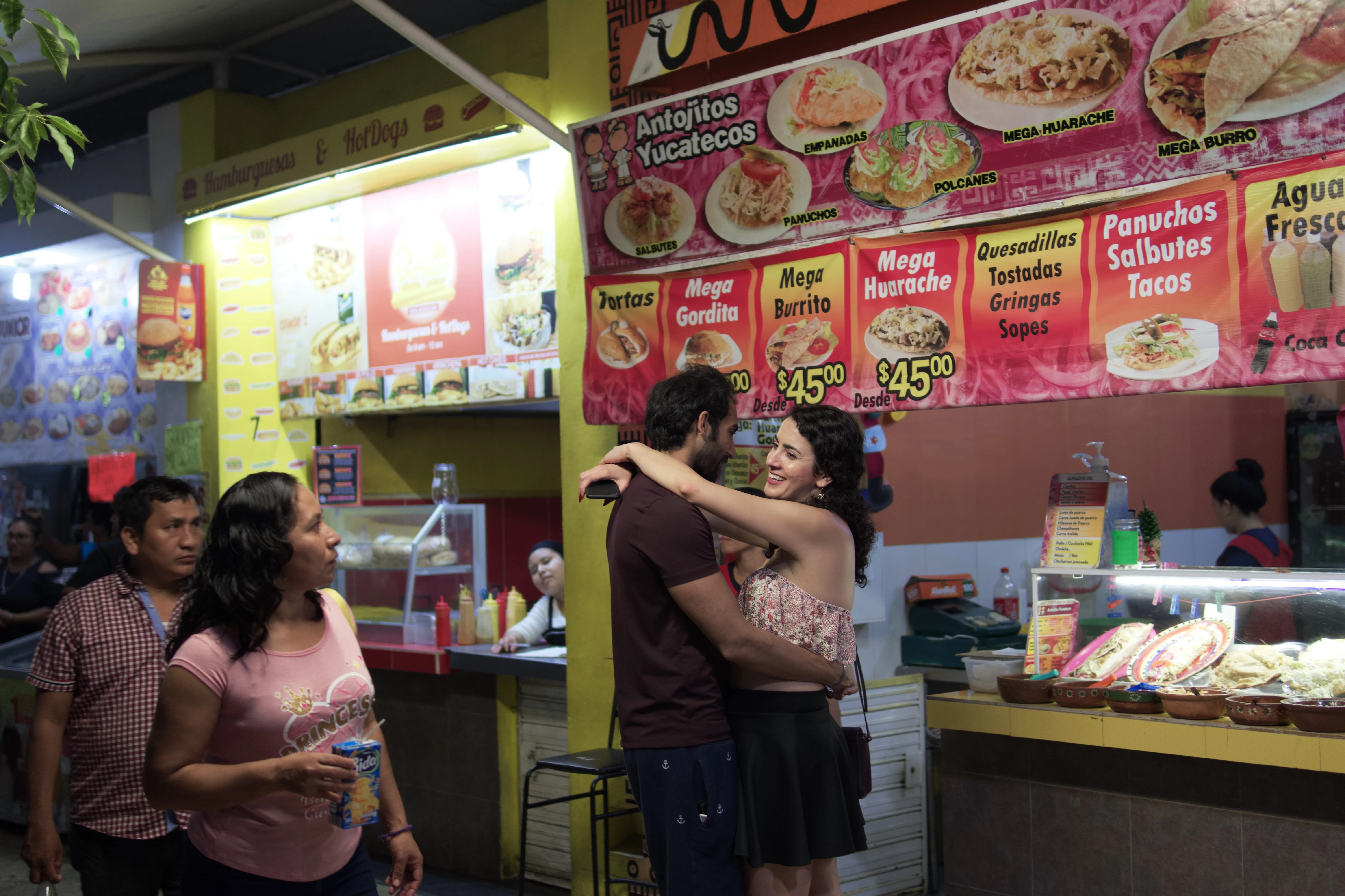 坎昆的最后一晚去了当地的夜市,各种小吃零食种类挺多,但最令人惊喜的还是坎昆的街头艺人和西语说唱。一身黑色摇滚行头,拉着音响,唱着似乎是柔情的曲子,与环境有些格格不入。后来心血来潮查了一下,是Héroes del Silencio的La chispa adecuada。