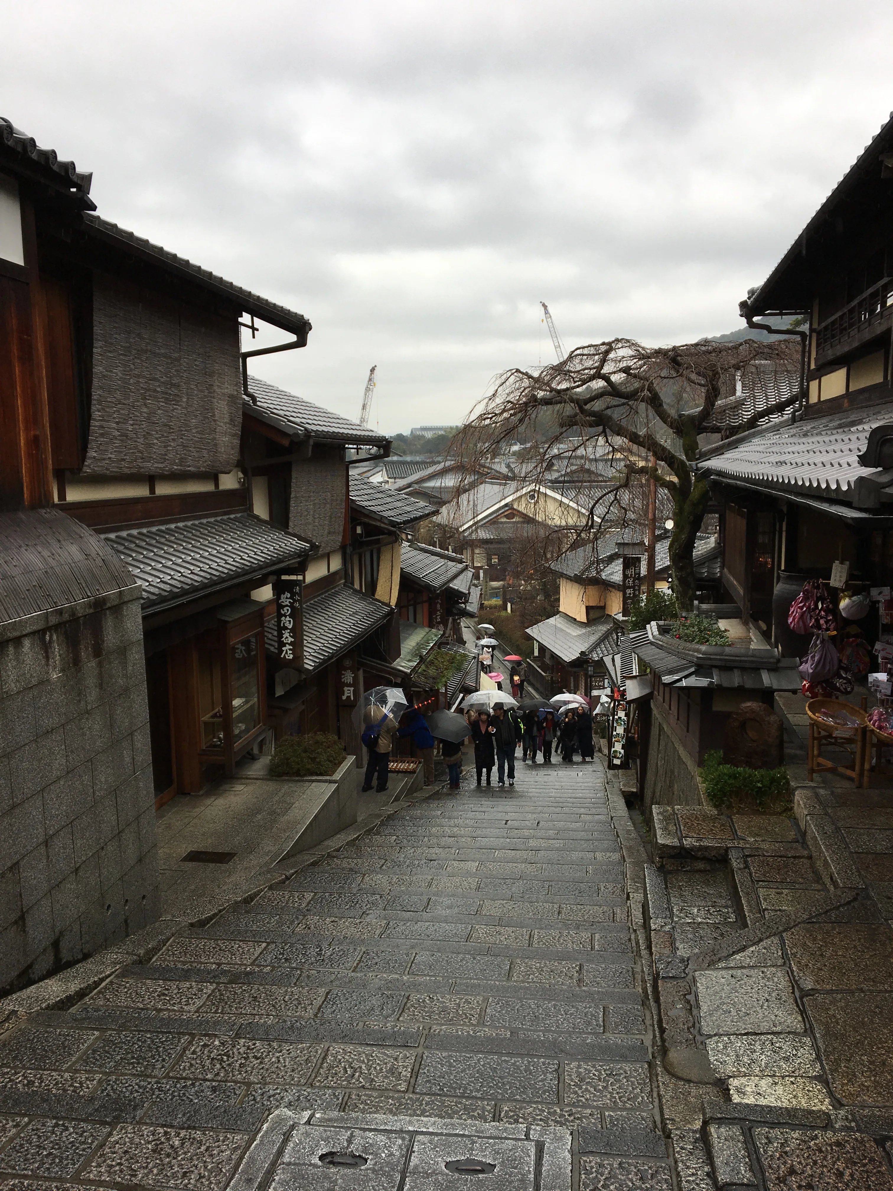 从清水寺走出时,雨渐渐停歇,天空染了晚霞的色彩。沿着三年坂、二年坂的街道缓步下山,两旁是售卖抹茶和手工艺品的精致作坊,还有门口挂着暖帘的居酒屋。我喜欢听路人谈笑聊天的声音,即便听不懂他们在说些什么,他们的那份快乐一定来自于很有趣的事情吧。