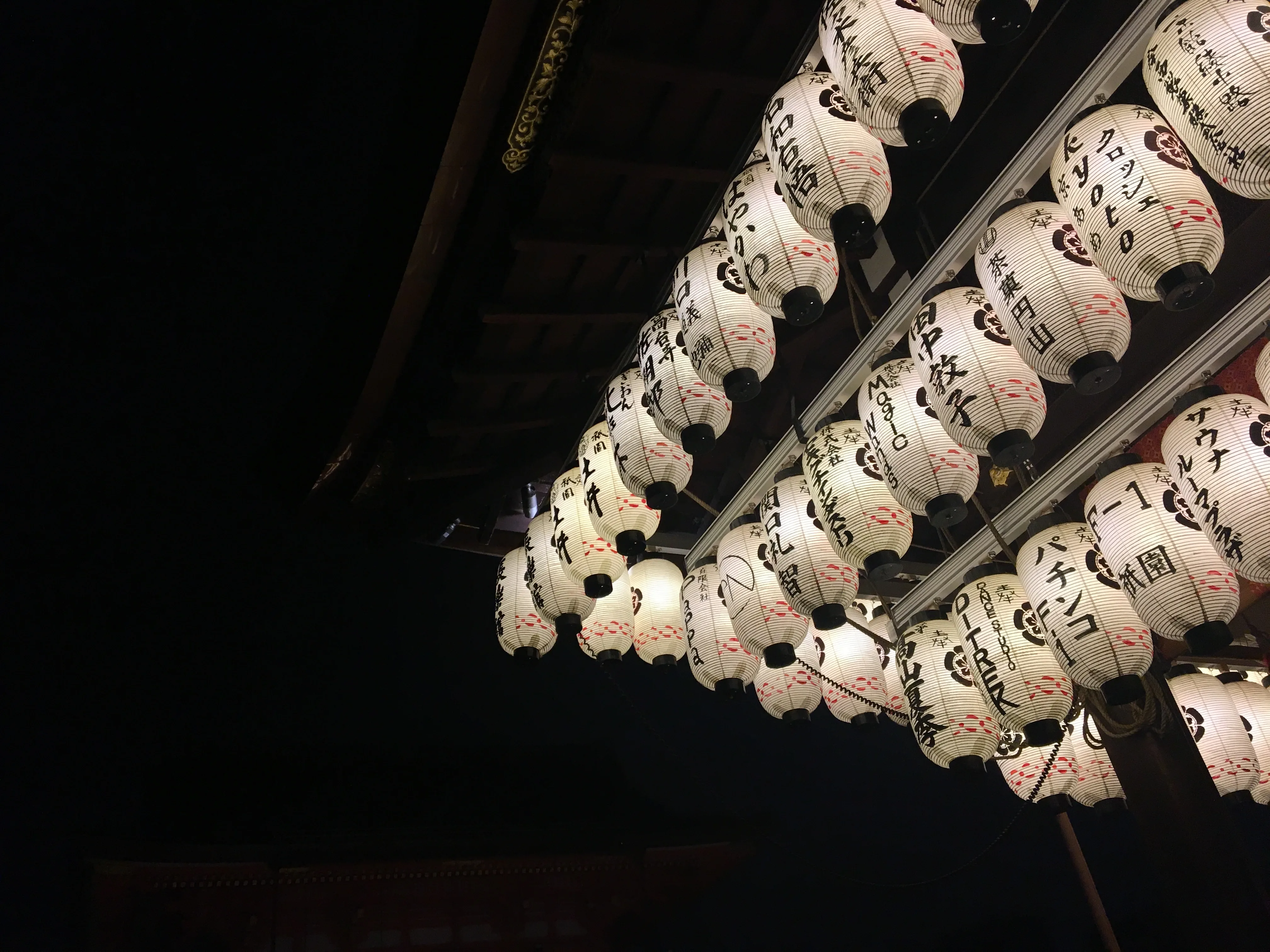 闲来无事,走去八坂神社看看。果然,夜晚的神社别有一番韵味——红灯笼尽数点亮,映衬得鸟居和神庙更具宗教的庄严。我本以为自己是唯一的访客,却在灯火阑珊处邂逅了一位身着红色和服的女子,正虔诚祈愿。我怔怔得停下了脚步,不远处的手水舍旁,一只小猫正蜷缩酣睡。
